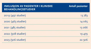 Fleire nye pasientar i kliniske behandlingsstudiar