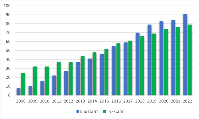 Kjelde: Nasjonalt kvalitetsregister for tykk- og endetarmskreft